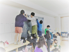今日は朝からリハーサルを行いました。写真は1,2,6年生のワンシーンです。連日様子を見ていますが、どの学年も声や動きが大きくなり、相手に伝わるものになってきたと思います。保護者の皆様には明後日ご覧いただきます。ご来校をお待ちしております。さて、教師はよりよい作品にするため、こどもが下校した後細かな打ち合わせを行います。ある学年は新たな背景づくりに取りかかっていました。まさに「陰の努力」そのものです。※次回の更新は来週といたします。