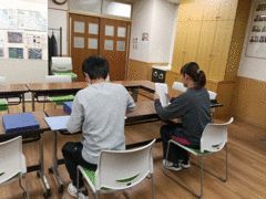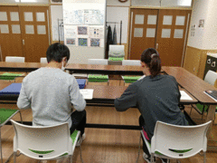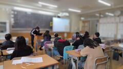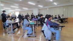 昨日の海苔を天日干ししています。近づくと「パリパリッ」と海苔が乾く音が聞こえてきます。ふるさと館で毎年観ている説明動画を思い出し、「なるほど」と思いました。6年生は外国語の授業に集中しています。