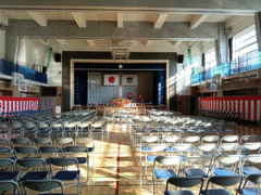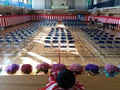 今日は大森第四小学校93回目の卒業式です。出勤後に会場を確認しました。7時40分ごろの写真です。主役の登場までおよそ2時間です。よろしくお願いいたします。