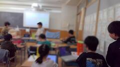 2時間目に校内を回りました。1年生は校庭を走り、縄跳びを始めるところです。2年生は図工「まどのあるたてもの」。まもなく完成という段階です。3年生は算数、タブレットを使って問題に取り組んでいました。今日は火曜日ですが、教師は近隣の学校の研究発表会に参加するため、全学年午前授業にしています。