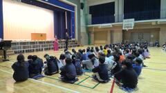 今日は、「ミュージックキャリアプラン」ということで、プロの歌手をお招きして音楽を通して伝えたいことなどを学びました。キャリア教育の一環です。こどもたちは話を聞くだけでなく、実際に歌うことを通してアドバイスも受けました。