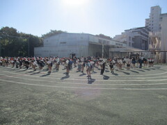 運動会に向けて、全校で集まり、開会式、準備運動~大五体操~、閉会式などの練習をしました。