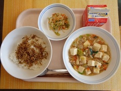 ごはん 骨太ふりかけ 牛乳 野菜と豆腐の旨煮 れんこんサラダ