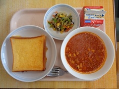 ヨーグルトフレンチトースト 牛乳 チリコンカン ひじきのサラダ