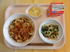 味噌煮込みうどん 牛乳 野菜のポン酢和え 鬼まんじゅう