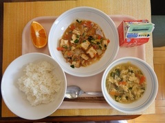 ごはん 牛乳 厚揚げと白菜のみそ炒め 卵とわかめのスープ 天草オレンジ