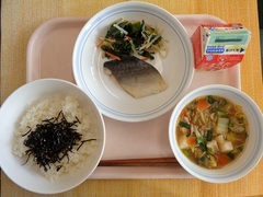 ごはん/韓国風ふりかけ 牛乳 魚の塩焼き ナムル チゲ豆腐