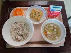 ゆかりごはん 牛乳 卵焼き ちゃんこ汁 ポンカン