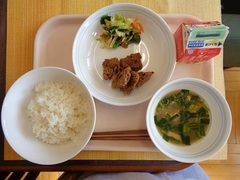 今日の給食ではくじらを使った竜田揚げを作りました。