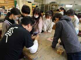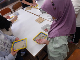 日本の伝統文化や工芸品の学習の一環として、ものづくり体験を行いました。東京都印章技能士会の職人さんが4名講師として来校してくださり、はんこづくりをしました。はんこの歴史や印章と印鑑のちがいについてなどの講話と、金印や昔のはんこのレプリカも見せてくださいました。
