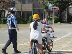 放課後や休日には、自転車安全教室で学習したことを思い出してに、自転車に乗ってほしいと思います。