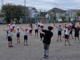 中学年の団体演技は「イロトリドリ」です。色とりどりのビブスを着用した3・4年生が、縄跳びを使って表現します。「一生懸命に頑張っている姿を見てもらおう!」を合言葉に、練習してきました。