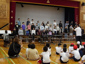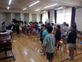連合音楽会の直前には、音楽朝会で、1~3年生と6年生と、聴きに来てくださった保護者の方に演奏を披露しました。大きな拍手をもらって自信をつけた、4年生と5年生は本番でも素晴らしい演奏をすることができました。