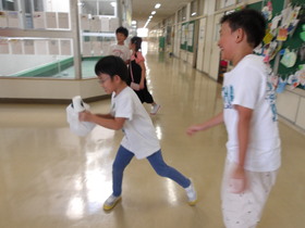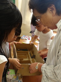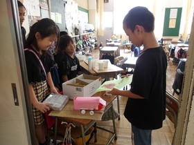 先月から手作りおもちゃに夢中のこどもたち。作ったものを楽しんでもらいたくて、お客さんを招くことにしました。1年生や先生方をおもちゃのお店に招待し、遊んでもらいました。「楽しかった!」「『いらっしゃいませ』って言ったよ!」「喜んでくれたよ」「先生が『面白い』って言ってくれたよ!」嬉しそうに報告してくれました。