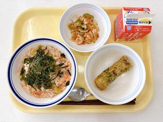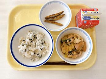 1年生は、ごまわかめごはんが特に人気で、ちくわも「食べたことあるー!」と抵抗なく食べている子が多かったです。和食の中でも食べやすいメニューだったので、よく食べていました。