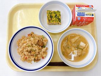 今日は保護者会があり、1~3年生は早く食べて帰らなければいけないので、食べやすいメニューになっています。