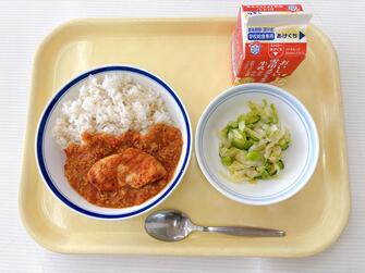 魚のマッシュポテト焼きは新メニューです。マッシュポテトにマヨネーズを混ぜて白身魚の上にのせて焼きます。子どもたちの反応が心配でしたが、「おうちでも食べたいのでレシピを教えてください。」と言ってくれる児童がいて、ホッとしました。