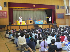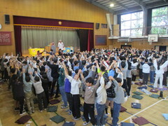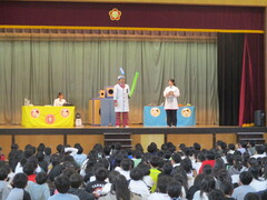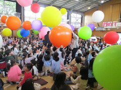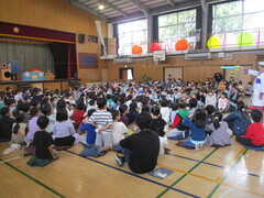 1~3年生、4~6年生を対象に米村でんじろう先生の弟子であるチャーリー西村先生が「サイエンスショー」を行ってくださいました。この「サイエンスショー」は、100周年実行委員のみなさんが「三井住友信託銀行」と「山王小学校PTAのOBの方」のご後援をうけ企画してくださいました。