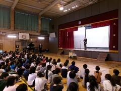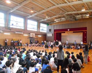 1~4年生は、5、6年生の委員会の活動を聞くために、一生懸命話を聞いていました。