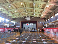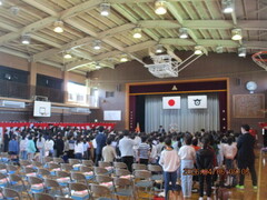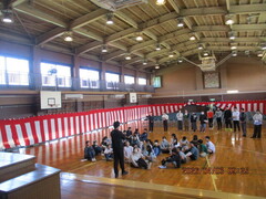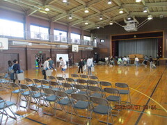 体育館には来週からの学校生活をスムースにスタートさせるために多くの新6年生たちが集合時刻よりも早く集まってきました、