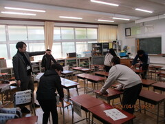 まず、各教室の机、椅子の移動。一部は新校舎(学童保育、放課後のこども教室)からの搬入もあり、特に階段での運搬には十分注意して行いました。