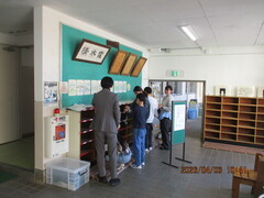 高学年昇降口からは、靴を履き替えた児童の「ここの階段を上がっていいんだよね」「傘立ては・・・あっ、〇年〇組って書いてある」等の声が聞こえてきました。放送室では朝の放送の準備、確認、飼育小屋からは、うさぎのハルちゃんの世話を終えた6年生と笑顔で挨拶を交わしました。