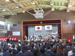 10時過ぎ、新2年生たちが入学式後のアトラクション練習のために登校してきました。体育館をはじめ校内の各教室では新6年生が諸準備をしていたので、算数教室で発声練習、合奏の練習をして、式場でのリハーサルに臨みました。3月までの黄色い帽子に代わり、紺色の校帽姿の新2年生は、来週の入学式の後のトラクションで1年生のお兄さん、お姉さんとして張り切って臨むことでしょう。