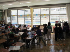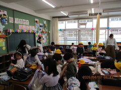 2年生の教室では「間違えて1年生の教室にいかなかったー春休みがあったから、(1年生の教室を)忘れちゃった」とお道化る児童がいたり、昨日の入学式アトラクションで控室として使っていた算数教室に置いた楽器等を友達の分まで運んでくる児童がいたりと活気が感じられました。
