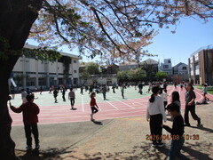 校庭を見渡すと、早速クラス遊びをしたり、昨年同様に異学年度ドッジボールをしたり、バスケットボール、鉄棒、ジャングルジムで遊ぶ児童たちがいました。