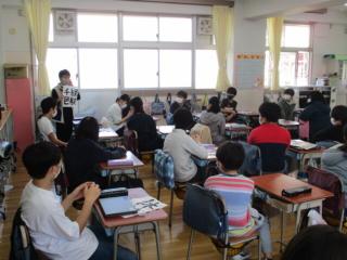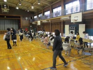 4、5年生は体育館で、3年生は教室で取り組みました。