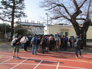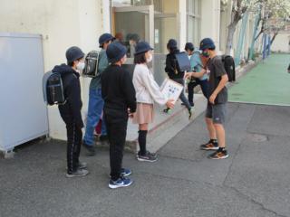 今日は、大田区教育委員会から、交通指導員の皆さんにお越しいただき、1年生の「下校訓練」をしました。