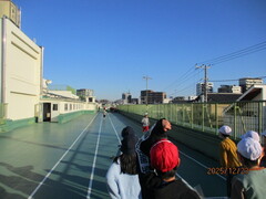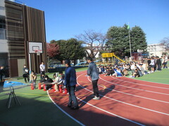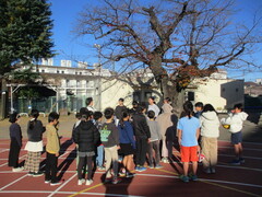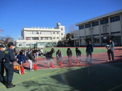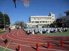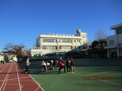 各たてわり班ごとに校庭、体育館、各屋上に集合し、担当教員が来るのを待つ間、あるグループではリーダーの6年生に1年生が横合いから手を出したり、周囲を駆け回ったりするので「1年生・・・もう、2学期も終わりだから・・・」と笑みを浮かべながらも少々困惑した表情を見せていました。その1年生はドッジボールを投げさせてもらっていましたが、「ボールが大きいんだよな・・・」と言って、投げる動作がストップする場面が何回もありました。