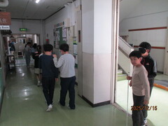 児童用机の2倍以上もある学習ボードにグループ皆の「計画書」を貼り、他のグループの人たちに説明をするときに「話し合いをしてからみんなに言うんだよ。」「1番目は・・・2番目は・・・」等と相談した後に、実験を行う廊下に大きな学習ボードを運び出しました。