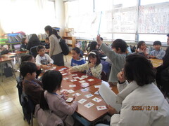 また今回は、留学生たちが緊張しないようにと、小グループでの交流を考えましたが、中にはBGMを流したり、カルタの遊び方を説明して遊んだり(時間がなくて実施できませんでしたが、歌を一緒にとの案も)している学級もありました。