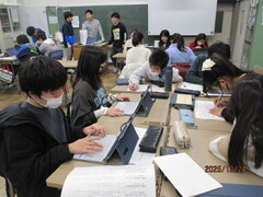 3校時、1年生は初めて使用する理科室で、来週のSC科研究授業に向けて早速「しゃぼんだまけんきゅう」の個別学習課題を立てていました。