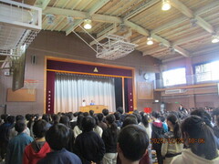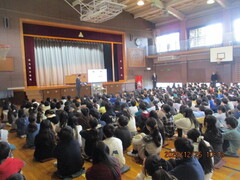 開式後、校長講話では80日間という2学期の学校行事を振り返りました。また通知表に書かれている「良いところ」はさらに伸ばすようにし、家族と話す中で「3学期、来年度に向けて努力していくことを決めてほしい」との話がありました。