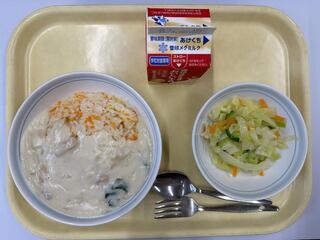 『キャロットライスのクリームソースかけ フレンチサラダ 牛乳』