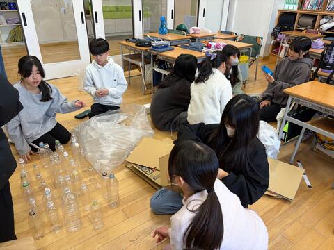 廃品を一番多く集めた 学年が勝つという勝負をしたので白熱しました。