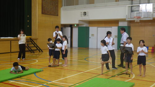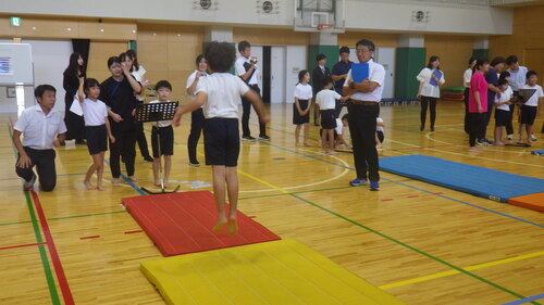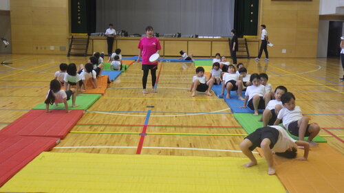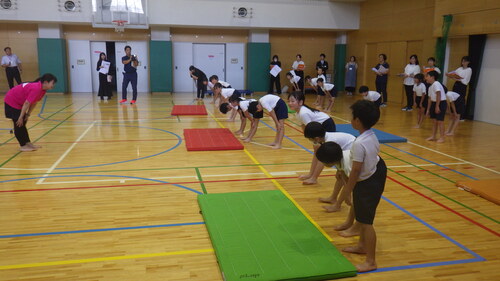 素直に、そして、意欲的に取り組む分、吸収力抜群の2年生。(この学習で培った力は、上の学年のマット運動につながっていきます。)