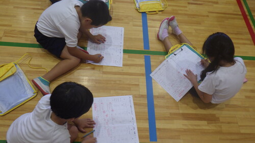 2年生のこどもたちは、たくさんの先生たちに見られている中でも、集中して体も頭も動かしました。