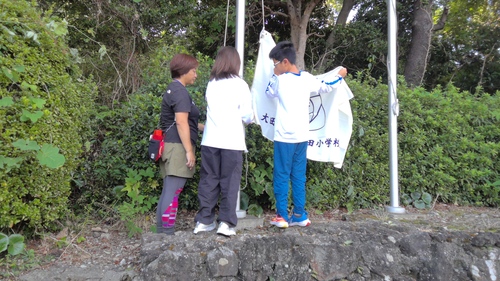 伊豆高原学園にも、志茂田小学校の校章旗を掲揚しています。