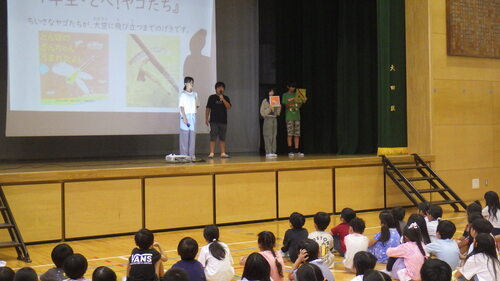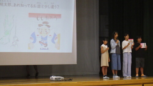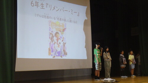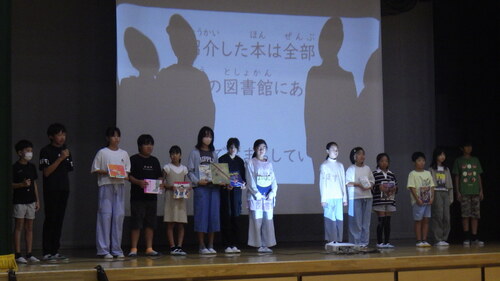 今朝は、図書委員のこどもたちが、読書を勧める発表をしました。