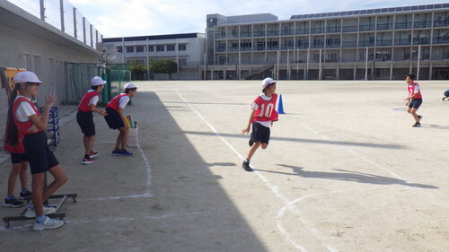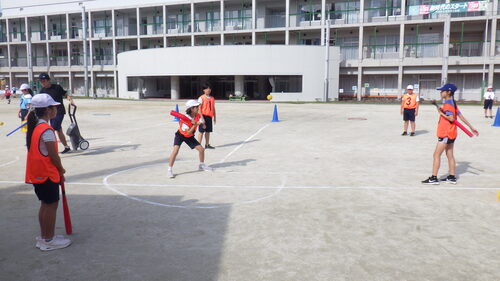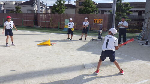 ベースボール型のボール運動得意不得意が出やすいものですが、チームで前向きな声掛けをしながら楽しむ様子が感じられました。