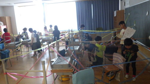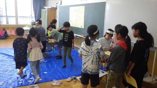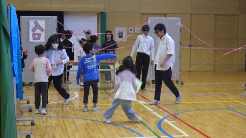 この日のために準備を進めて、学級や学年単位でゲームやアトラクションなどのお店を設置しました。(今日も、店員役のこどもたちは、集客したり盛り上げたりして頑張っていました。)