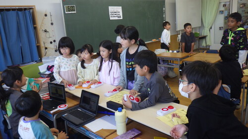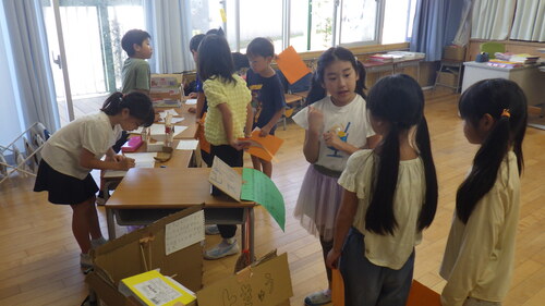 お店を楽しむこどもたちの声、受付役や呼込み役のこどもたちの声が校内に響く大盛況のこどもまつりになりました。