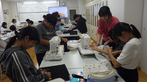 出来上がりつつある作品の縫い跡は、思っていた以上にきれいで、5年生の丁寧さや集中力が伝わるものでした。(そう言えば、伊豆高原学園移動教室のピザ作りや創作活動も黙々と取り組んでいたなあ。)