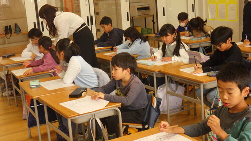 取り組んだ問題は、「太いえんぴつ」「長いかみの毛」「あつい本」「すずしい教室」「おもいつくえ」などの反対の言葉探しです