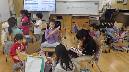 使った楽器は、鍵盤ハーモニカ、リコーダー、バスマスター(低音を出すキーボード)です。