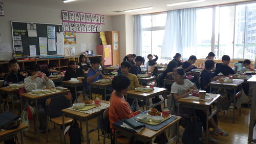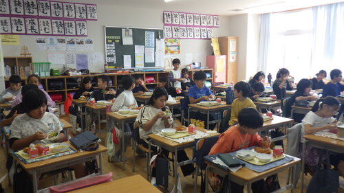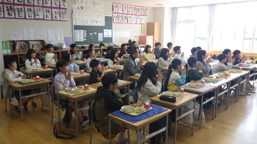 5年生の1学級と給食の時間を過ごし、大田区の給食やこどもたちの様子を御覧になられることが目的です。(一緒に給食を召し上がっていただきましたよ。)