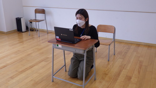 6年生は、それに合わせて、いつもなら全校に「おはようございます。」と呼び掛けるところを、「こんにちは!」と元気よく呼び掛けていました。